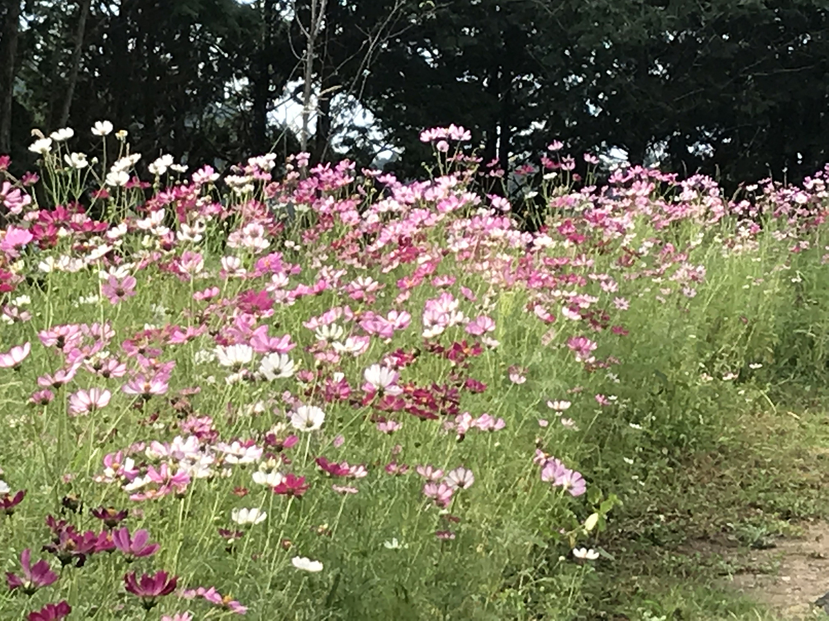 季節は秋ですので、柿の実がなっていたり、コスモスが咲いている風景が一般的です。