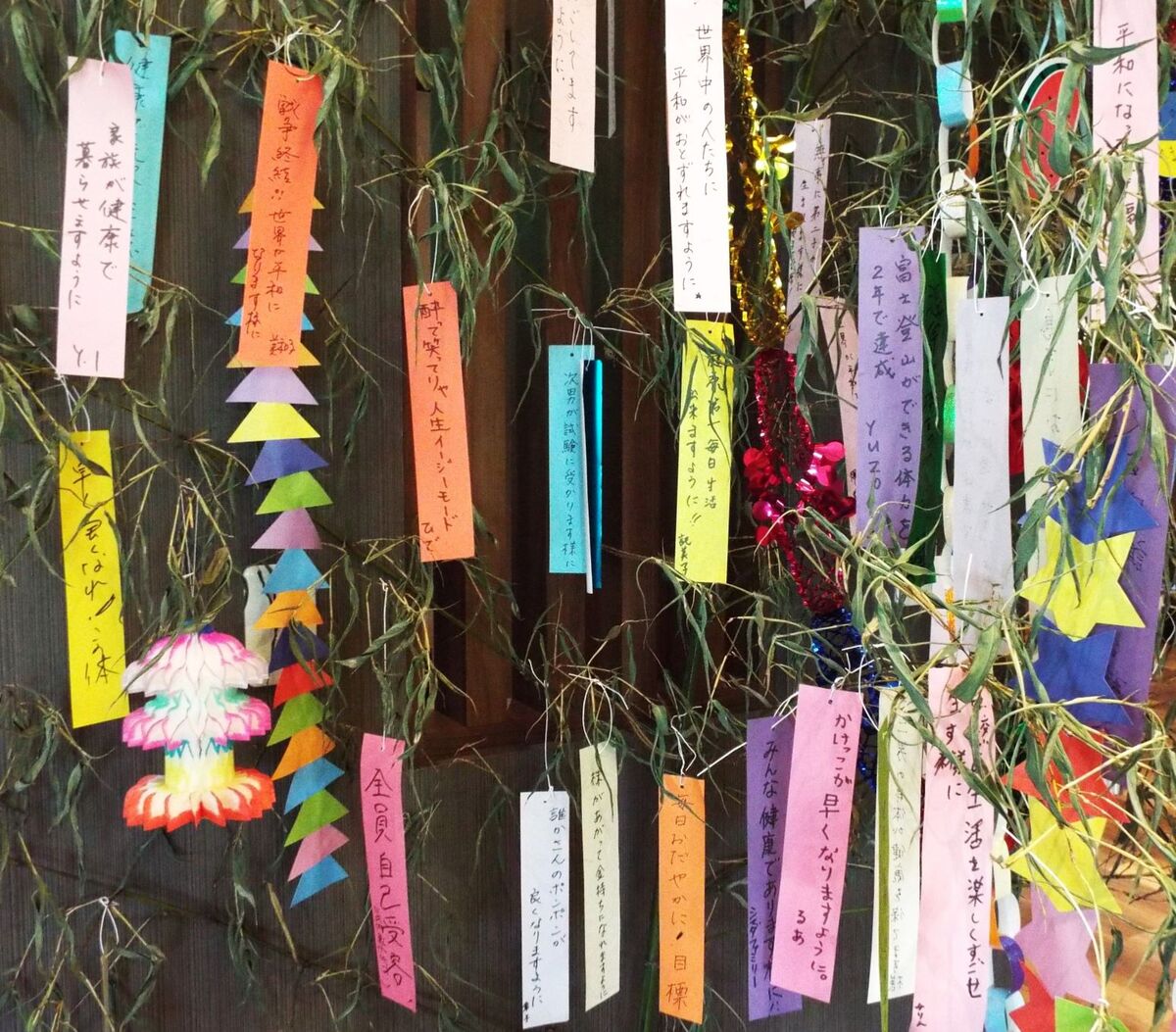多くのお客様が短冊を結んでくださっています