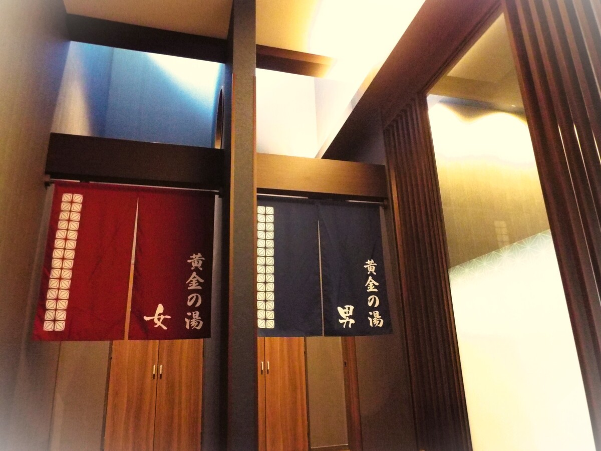 白金温泉の大浴場”黄金の湯”を利用します